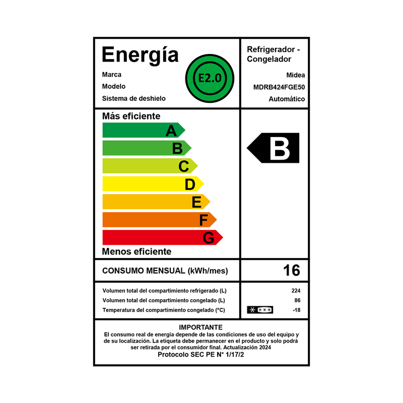 Otros | Clase Climática: T Niveles de Temperatura: 2~8 Temp máx. congelamiento: -18 Iluminación: Sí Número de bandejas: 4 Material bandeja (s): Vidrio Templado Número de canastillos: 5 Bandeja para Huevos: Sí Cajón Especial para Lácteos: No Cajón para Frutas y Verduras: Sí Sistema de deshielo: Automático Puerta reversíble: Sí Alarma con la puerta abierta: No Termostato: Dígital Tipo refrigerante: R600a Cantidad refrigerante (grs): 37 Corriente nominal (A): 0.8 Frecuencia nominal (Hz): 50 Potencia nominal (W): 170 Potencia nominal luz (W): 2 Consumo (kWh/mes): 24.3 Hecho en: China Garantía proveedor motor: 10 Garantía proveedor producto: 1 Datos servicio técnico: 6004611000 N° Certificado de Seguridad: E-022-09-0413 N° Certificado de EE: EE-012-09-0961 EAN: 6954903815862 |